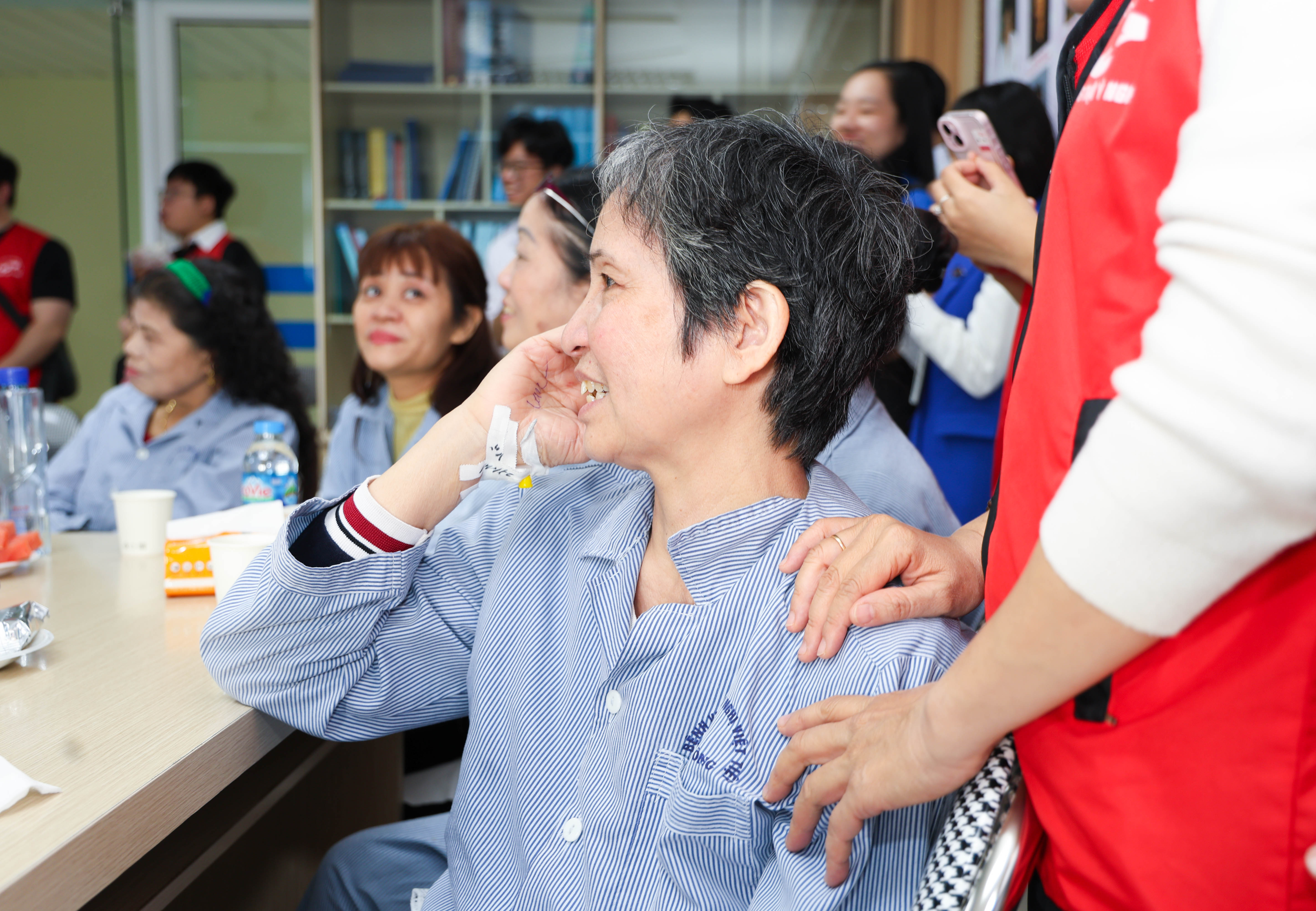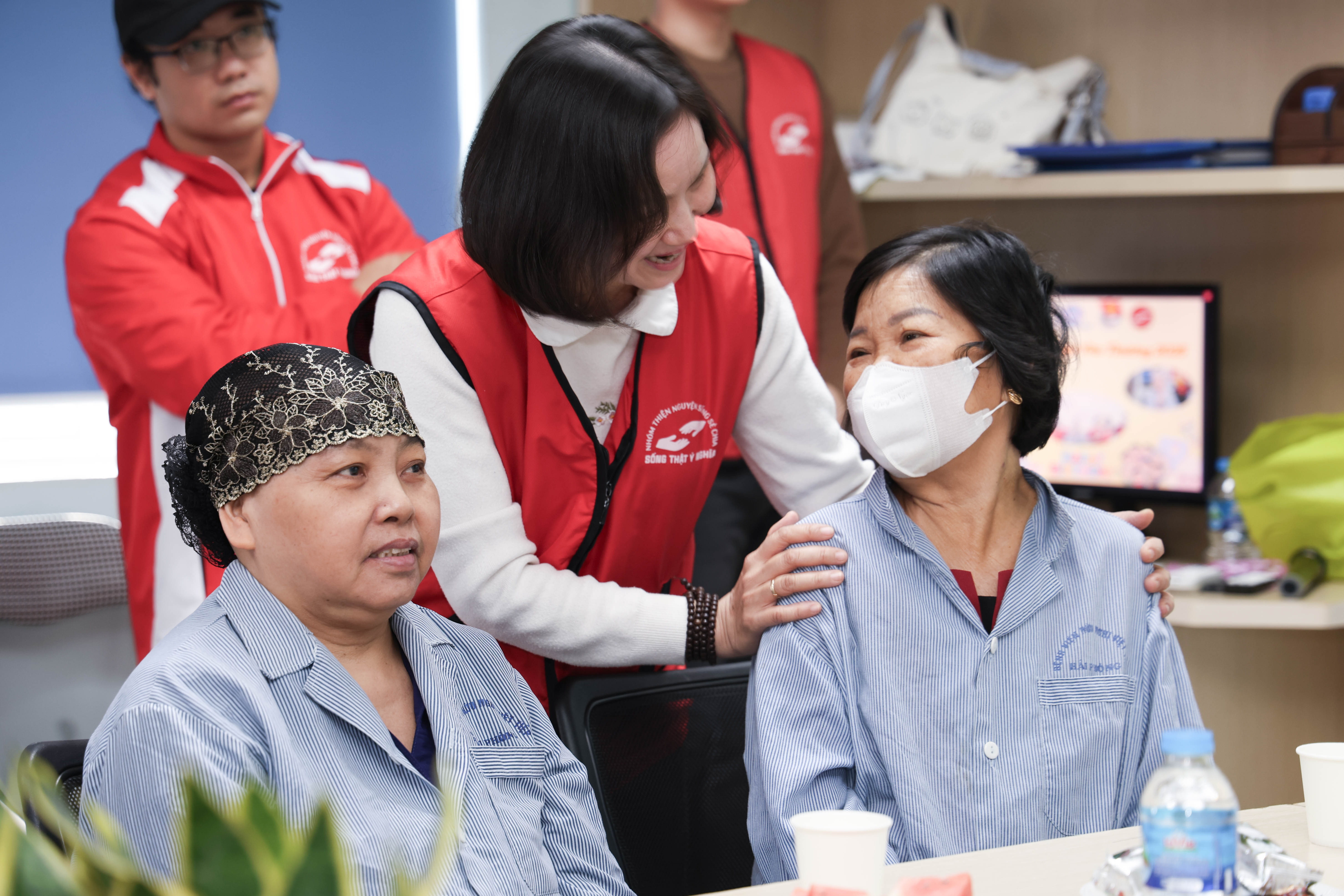 Không có quá nhiều điều phô trương, chỉ là chiếc bánh sinh nhật giản dị, những lời chúc chân thành và sự hiện diện của Đoàn Thanh niên Bệnh viện, Phòng Công tác xã hội cùng Nhóm Thiện nguyện Sống Sẻ Chia. Nhưng chính những điều nhỏ bé ấy lại chạm vào trái tim người bệnh một cách thật sâu sắc. Có người nhẹ nhàng thốt lên: “Lâu rồi tôi mới được tổ chức sinh nhật”, có người xúc động đến rưng rưng bởi giữa hành trình gian khó này, họ vẫn được yêu thương, vẫn được nhớ đến và vẫn có lý do để mỉm cười.