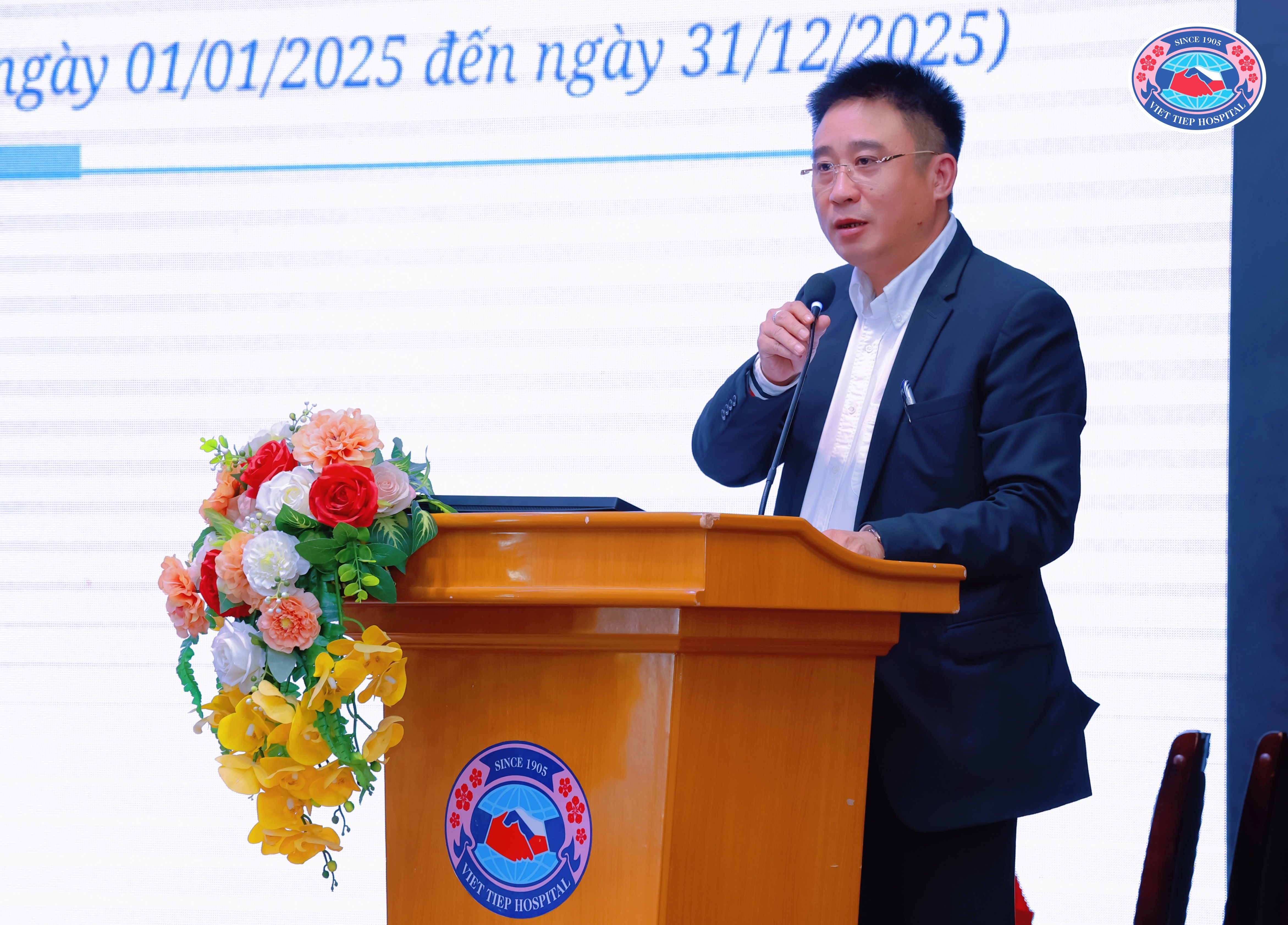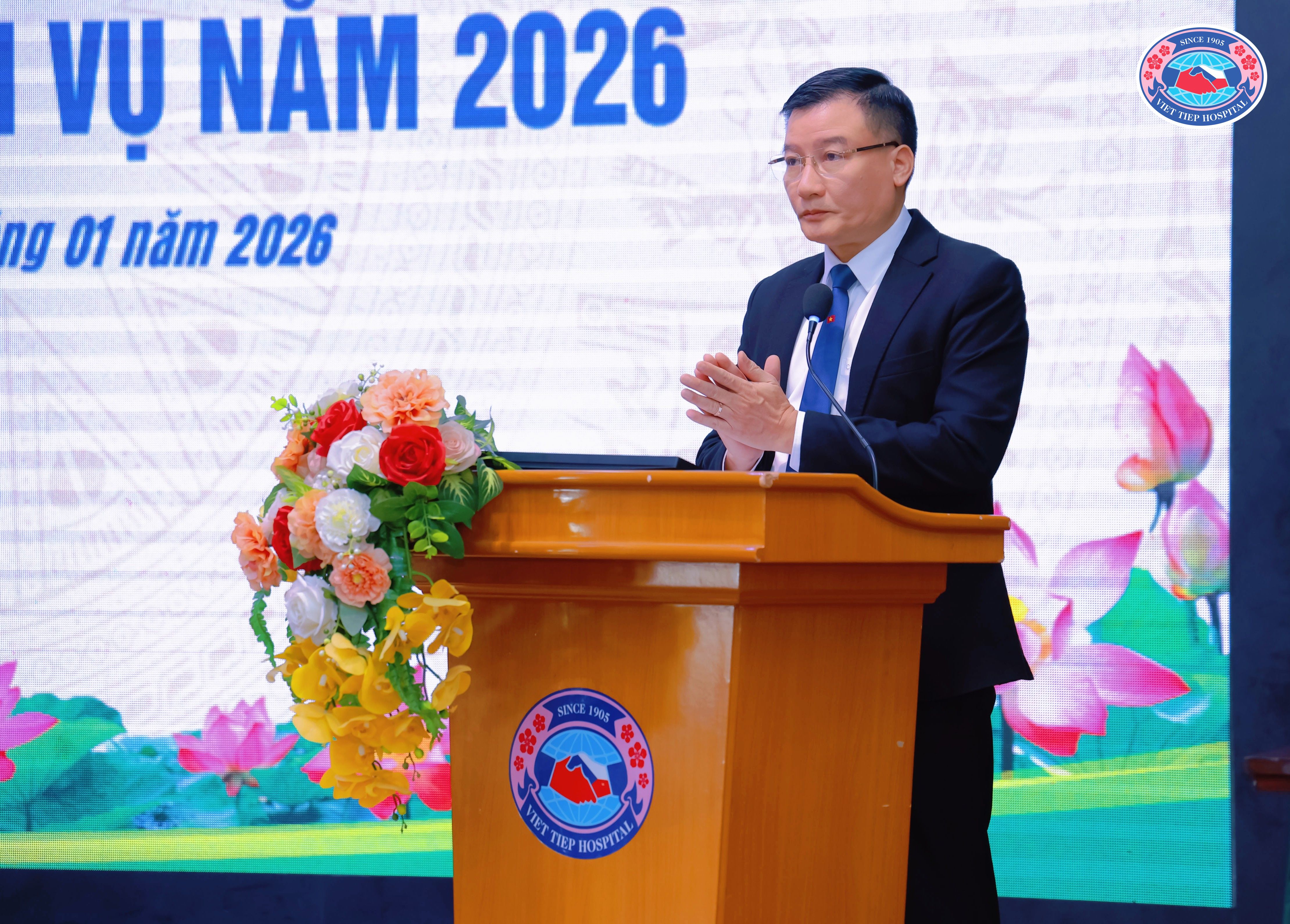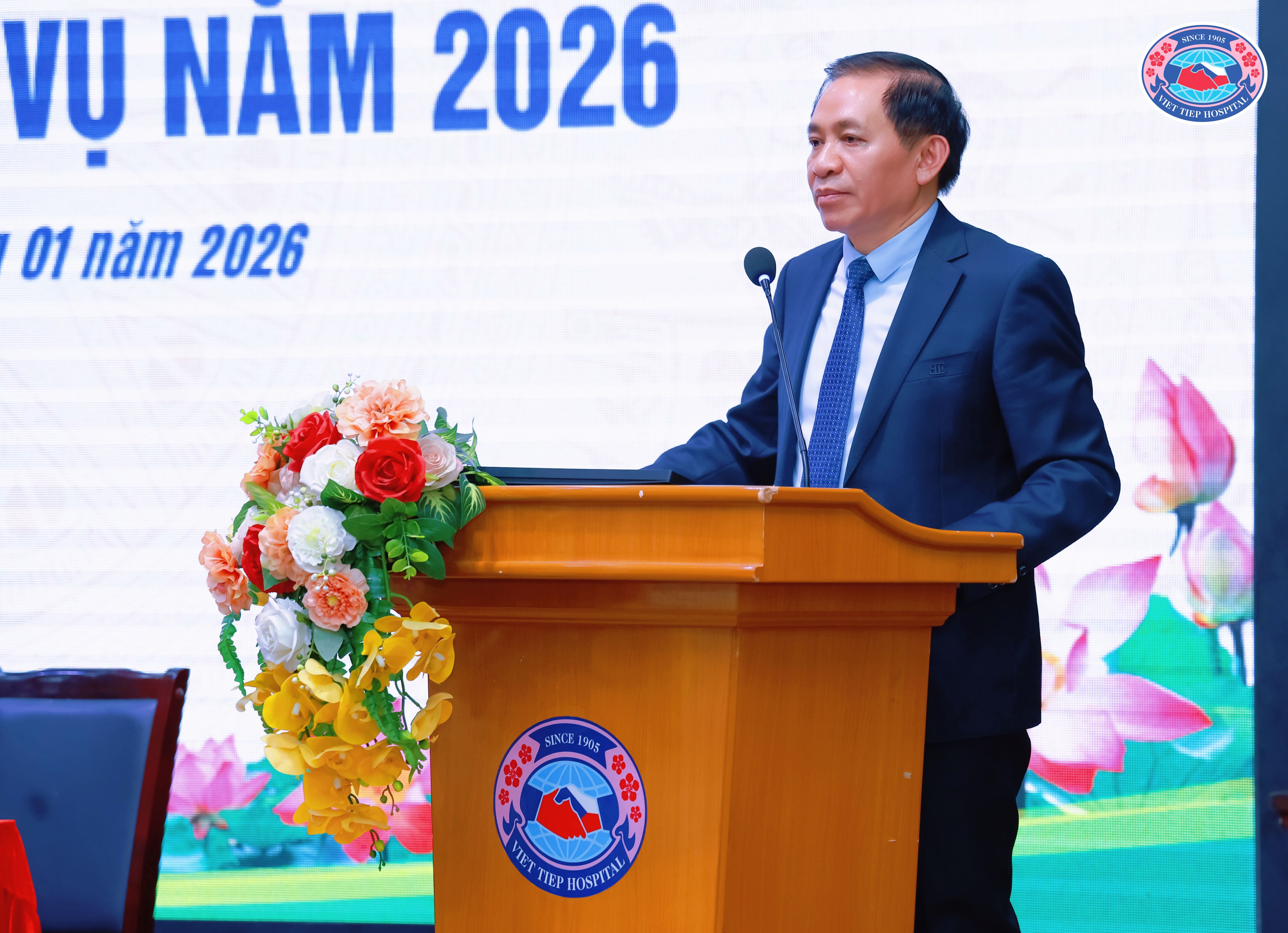 (TS.BS Đỗ Mạnh Thắng – Giám đốc Bệnh viện Hữu Nghị Việt Tiệp trình bày báo cáo tổng kết công tác Bệnh viện năm 2025, Nhiệm vụ, Kế hoạch năm 2026)
