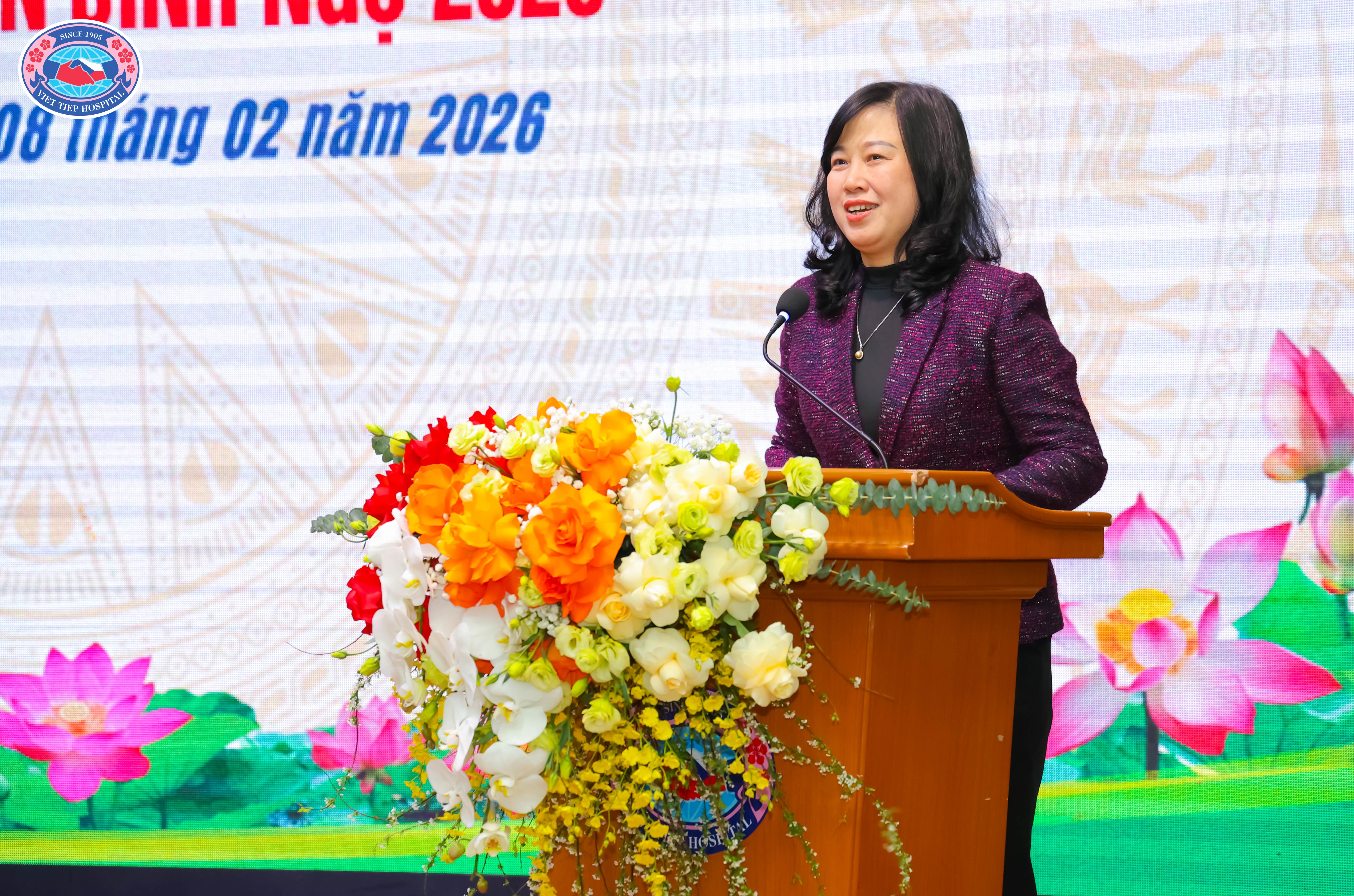 (Bộ trưởng Bộ Y tế Đào Hồng Lan động viên cán bộ, nhân viên y tế Bệnh viện Hữu Nghị Việt Tiệp trong dịp Tết cổ truyền Bính Ngọ 2026)