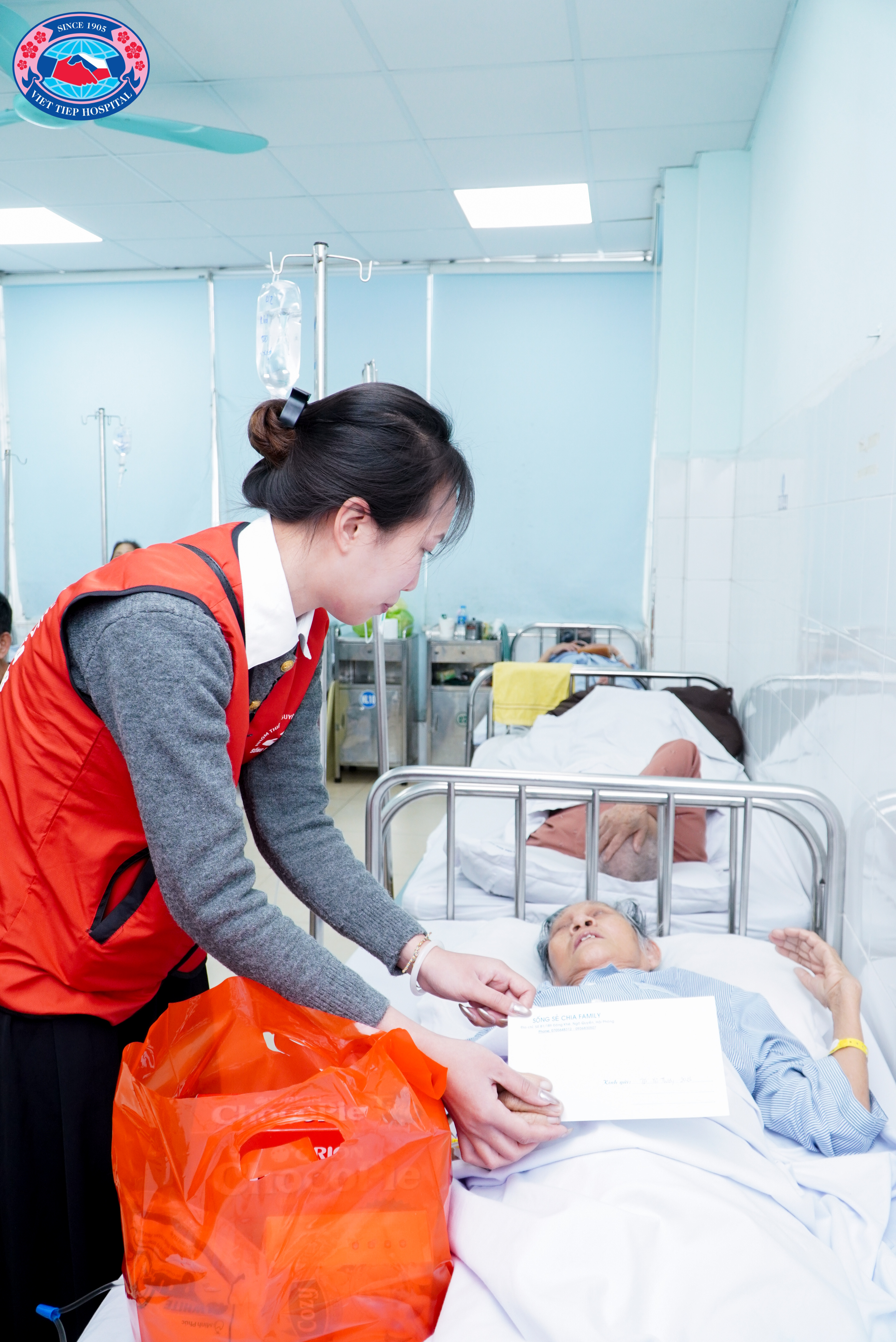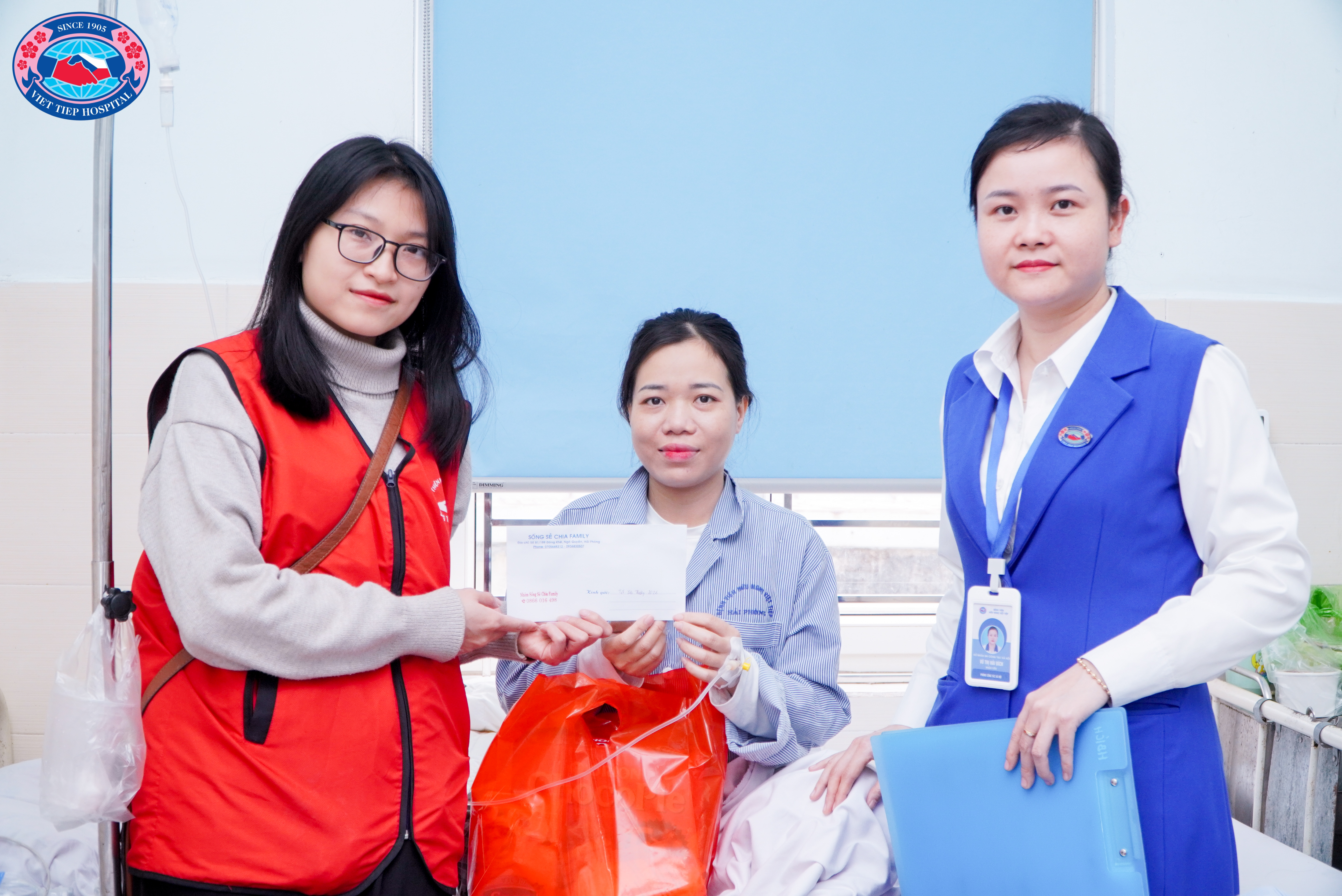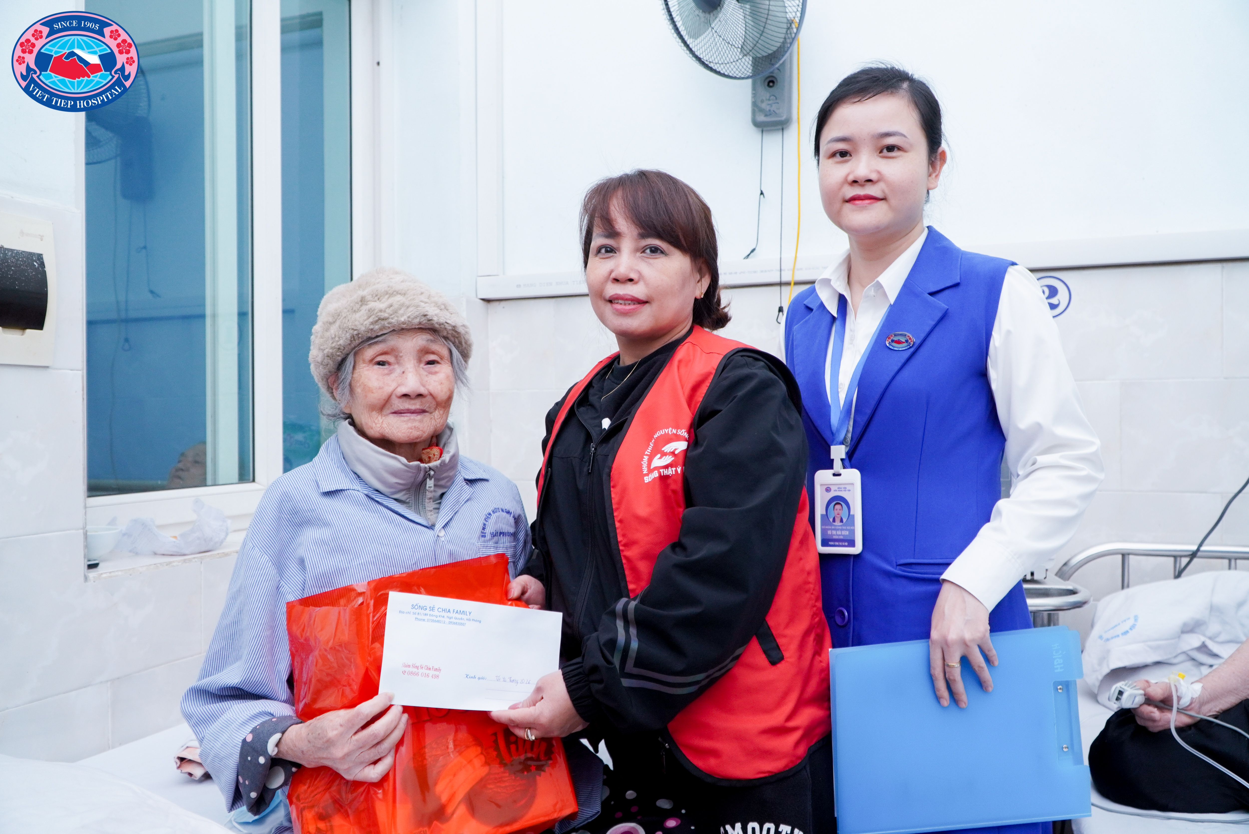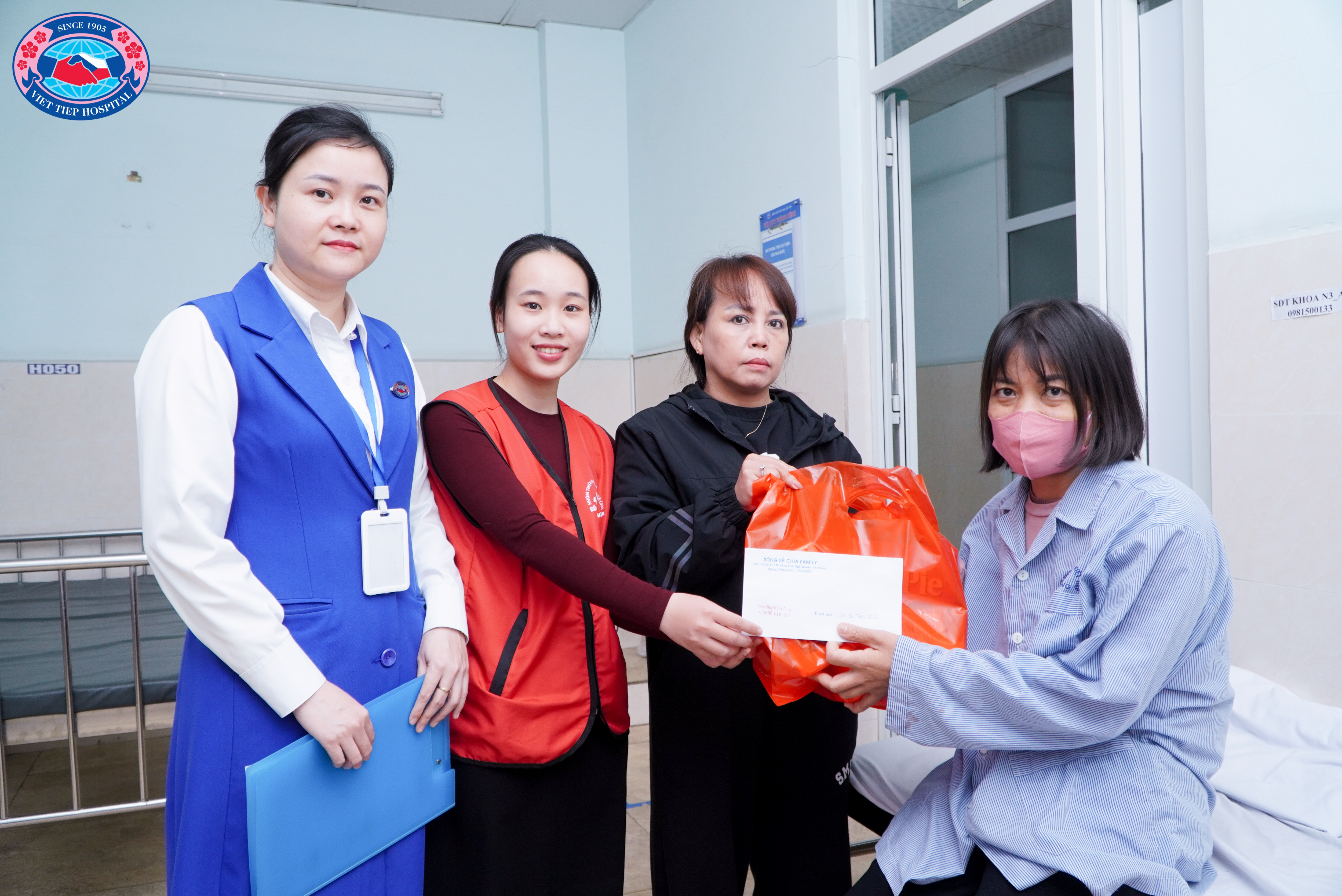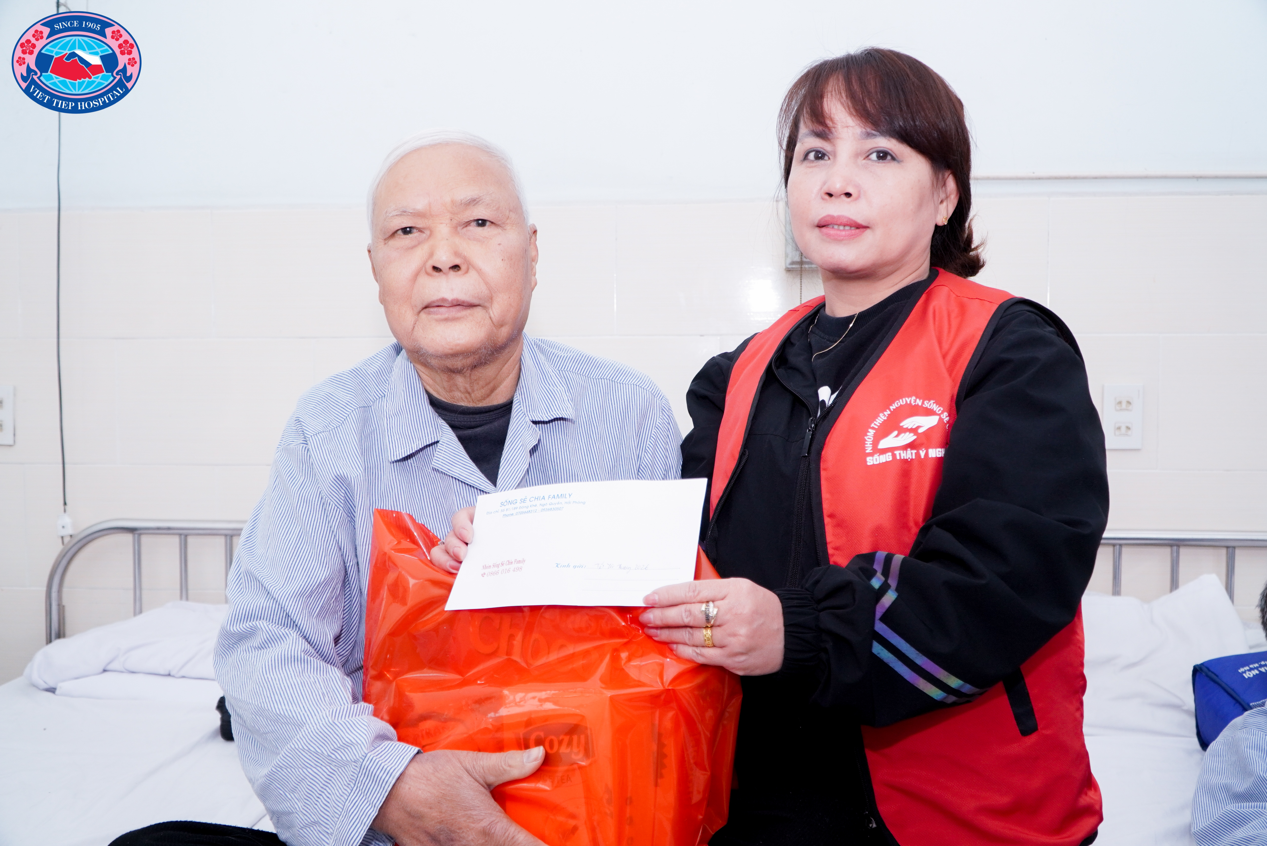Nhân dịp Tết đến xuân về, Nhóm Thiện nguyện Sống Sẻ Chia đã phối hợp cùng Phòng Công tác xã hội, Bệnh viện Hữu Nghị Việt Tiệp đến thăm và trao quà cho 15 người bệnh có hoàn cảnh khó khăn đang điều trị tại Khoa Ung bướu và Khoa Nội 3. Giữa những ngày cuối năm se lạnh, sự hiện diện ấy đã mang theo hơi ấm của sự quan tâm, của tình người lặng lẽ nhưng bền bỉ.