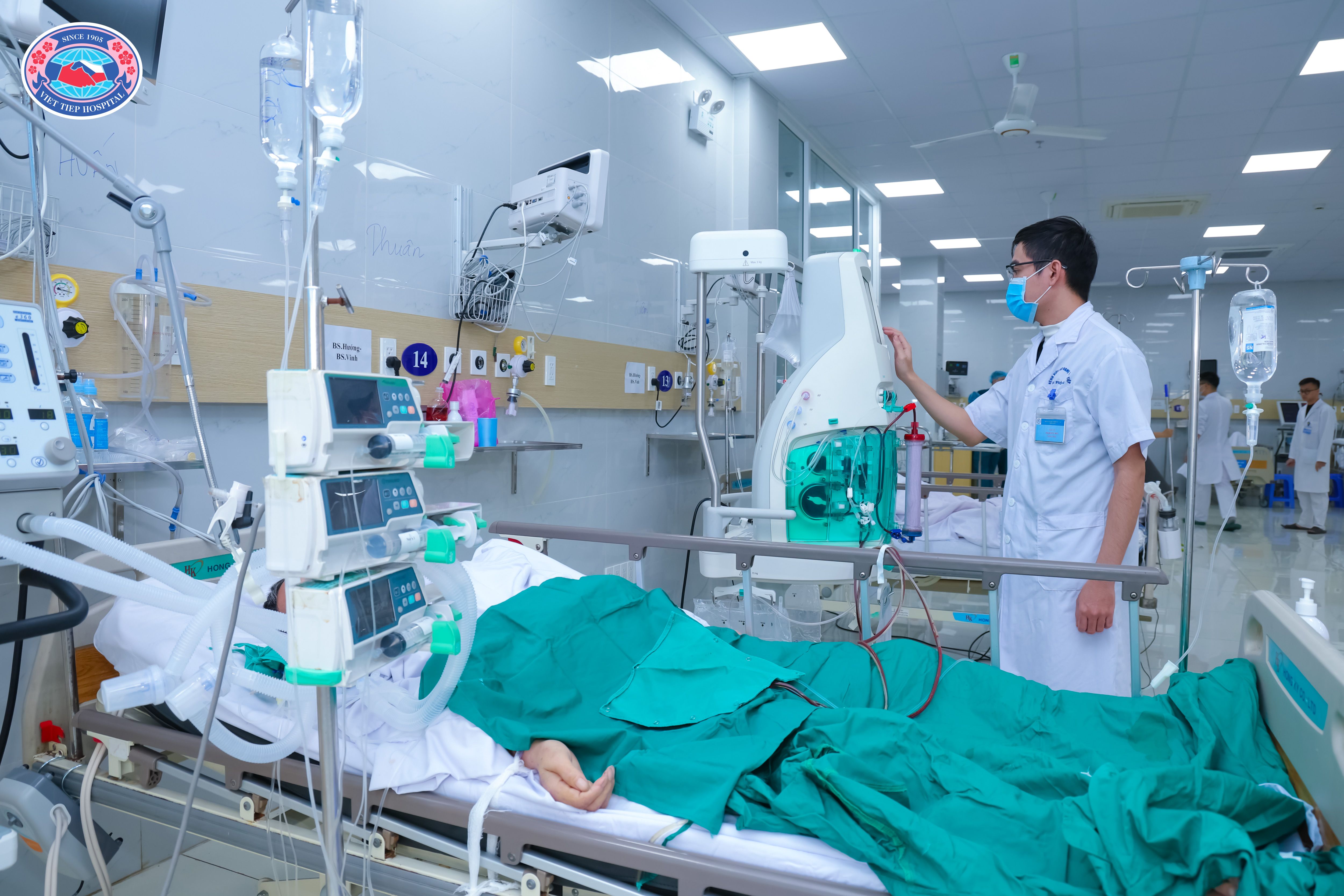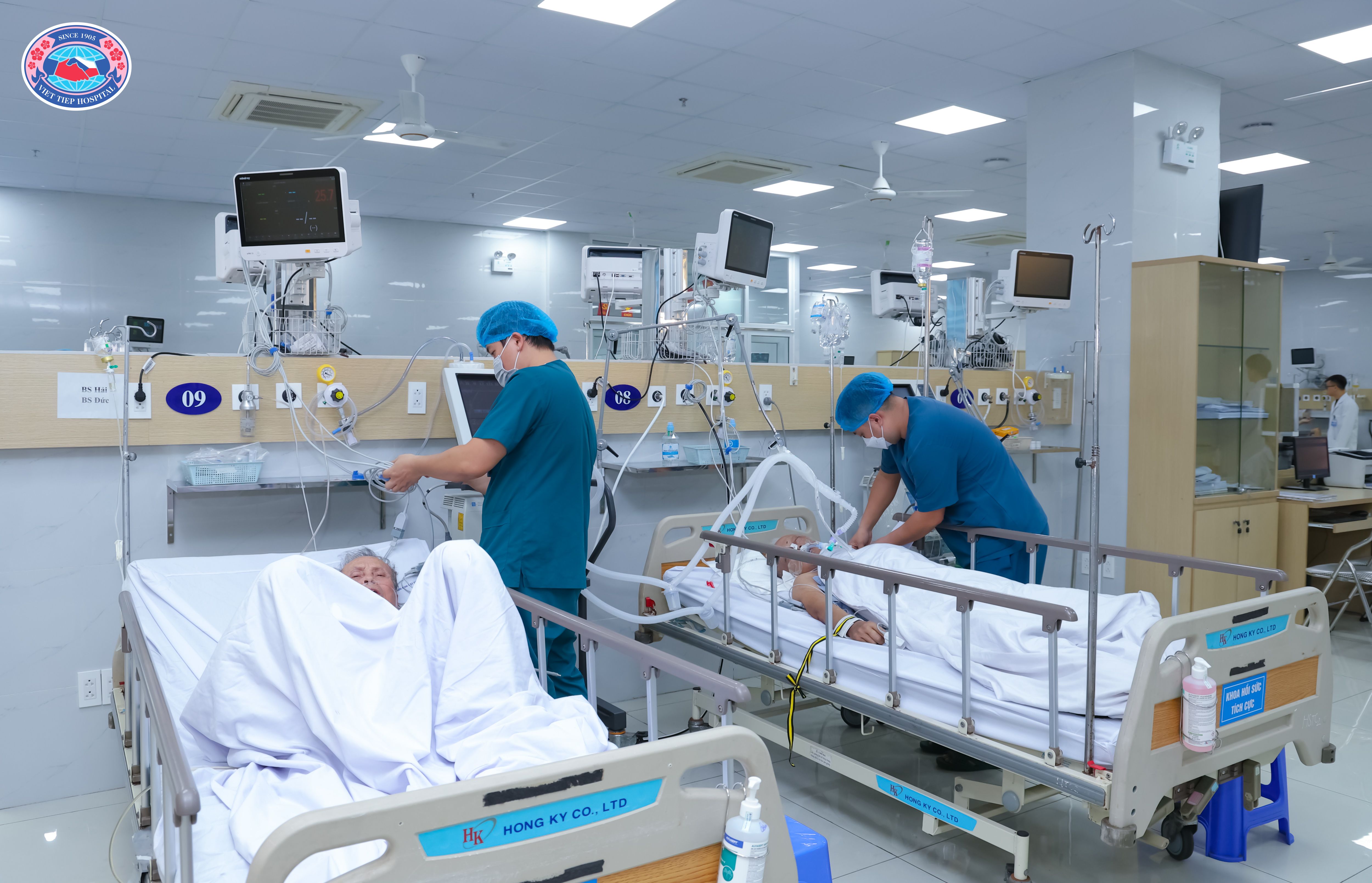(Không gian Khoa Hồi sức tích cực cơ sở 2 với hệ thống trang thiết bị hiện đại, được tổ chức khoa học, thể hiện sự tận tâm, chu đáo trong chăm sóc và điều trị hồi sức chuyên sâu cho người bệnh)