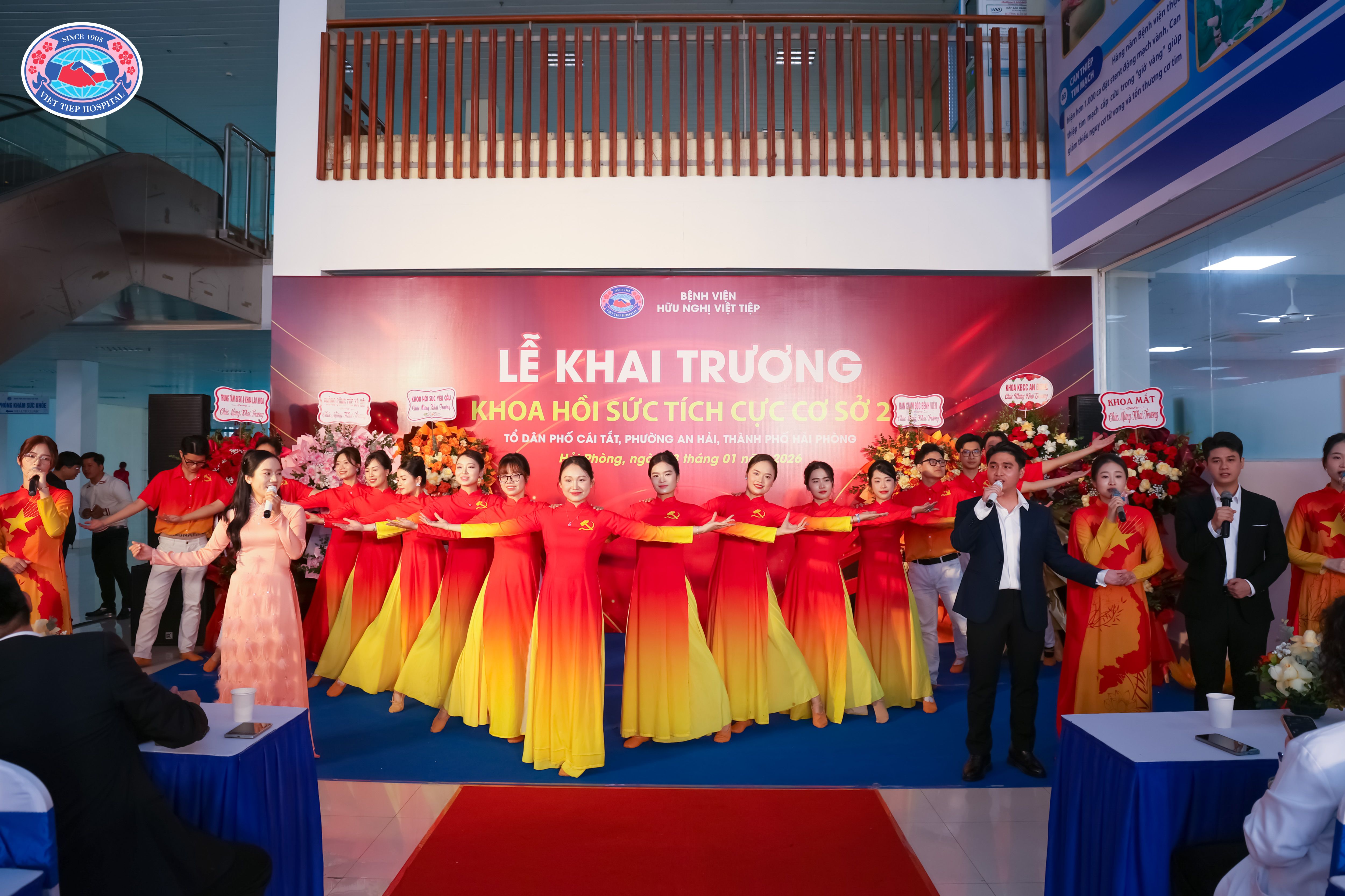 (Các tiết mục văn nghệ đặc sắc mở đầu chương trình, góp phần tạo không khí trang trọng, phấn khởi trong ngày khai trương Khoa Hồi sức tích cực cơ sở 2)