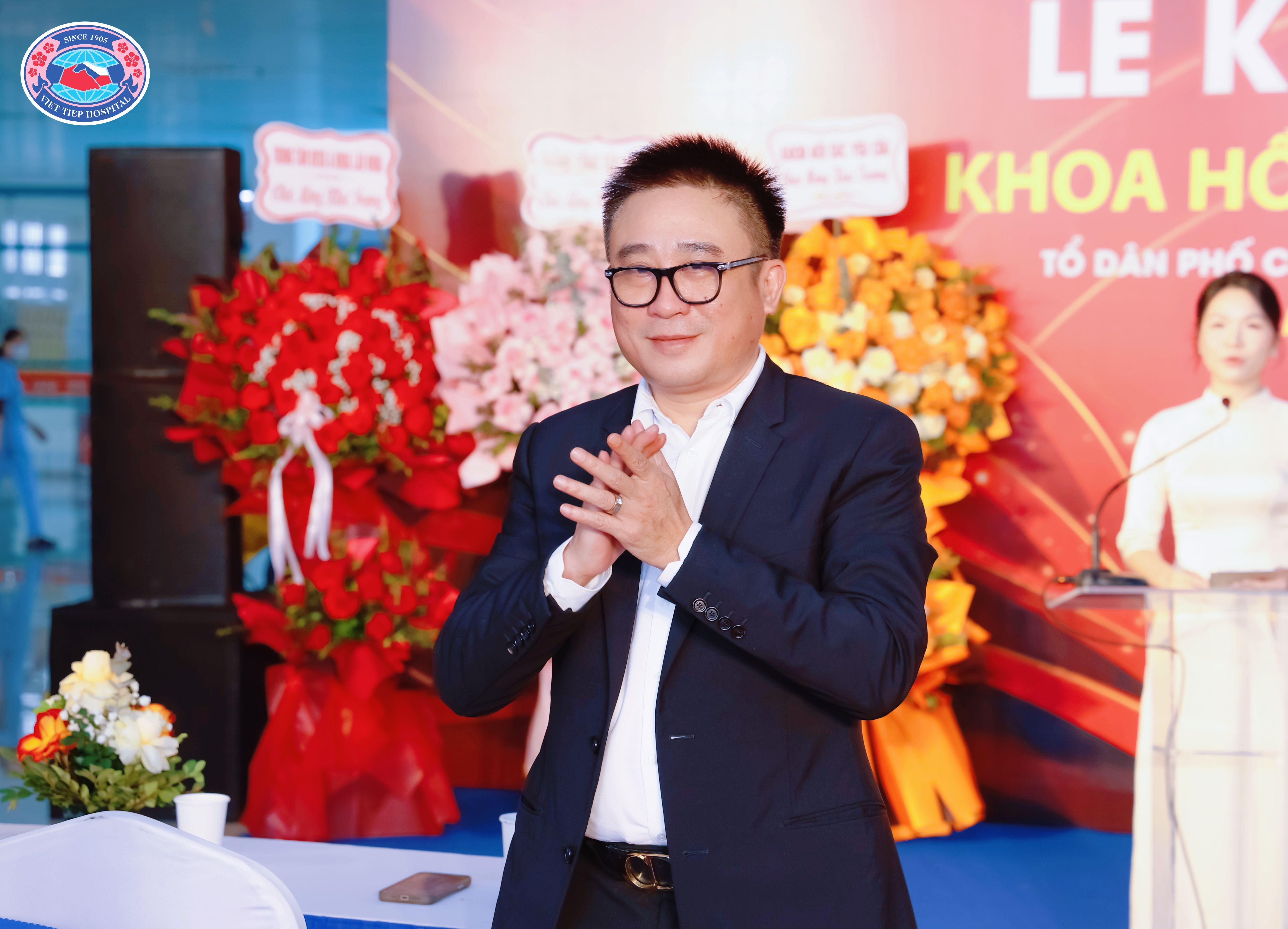 (TS.BS Đỗ Mạnh Thắng – Giám đốc Bệnh viện Hữu Nghị Việt Tiệp đến tham dự Lễ khai trương Khoa Hồi sức tích cực cơ sở 2, thể hiện sự quan tâm sâu sát của lãnh đạo Bệnh viện đối với công tác nâng cao năng lực hồi sức – cấp cứu)