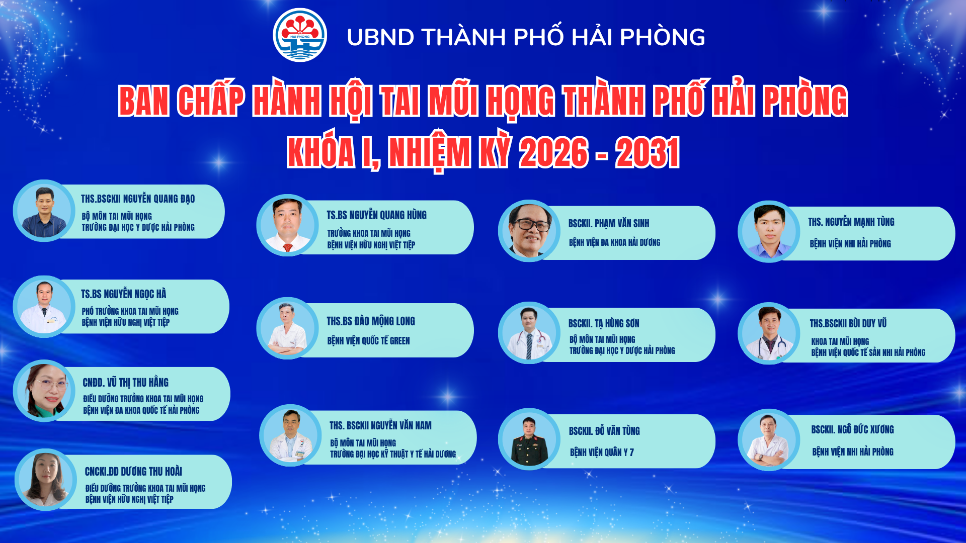 Ban Chấp hành Hội Tai Mũi Họng thành phố Hải Phòng khoá I, nhiệm kỳ 2026–2031 chính thức ra mắt gồm 13 thành viên.