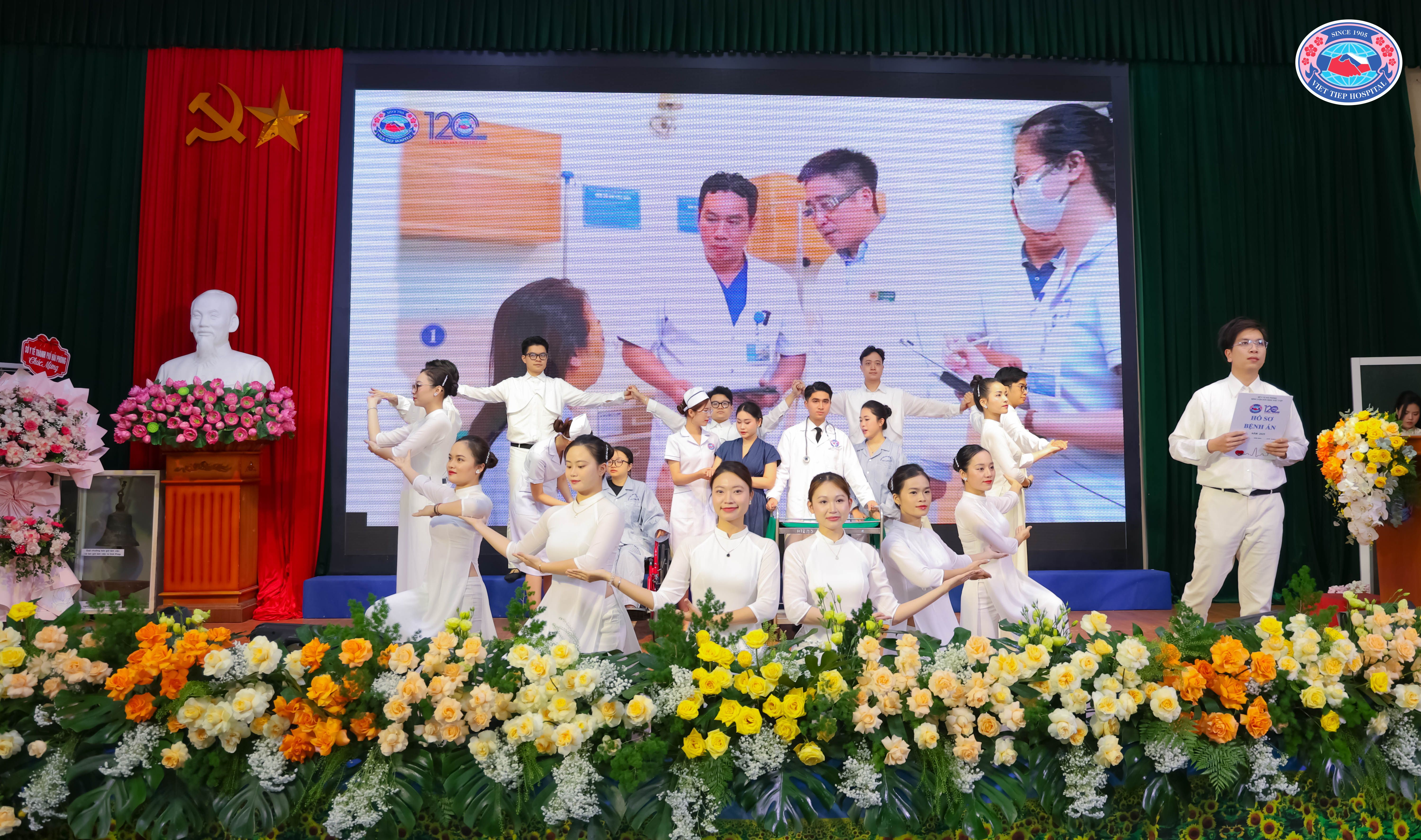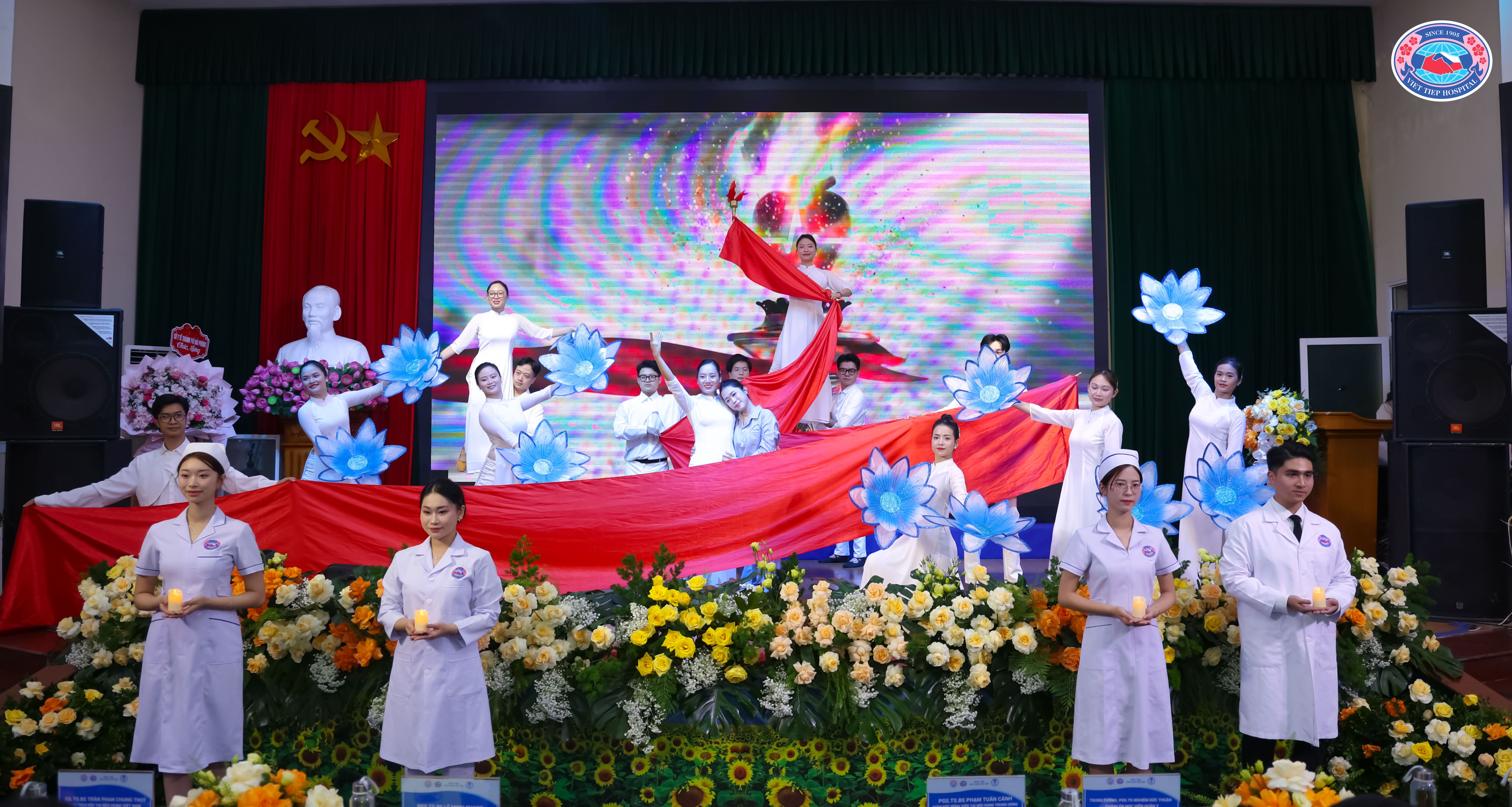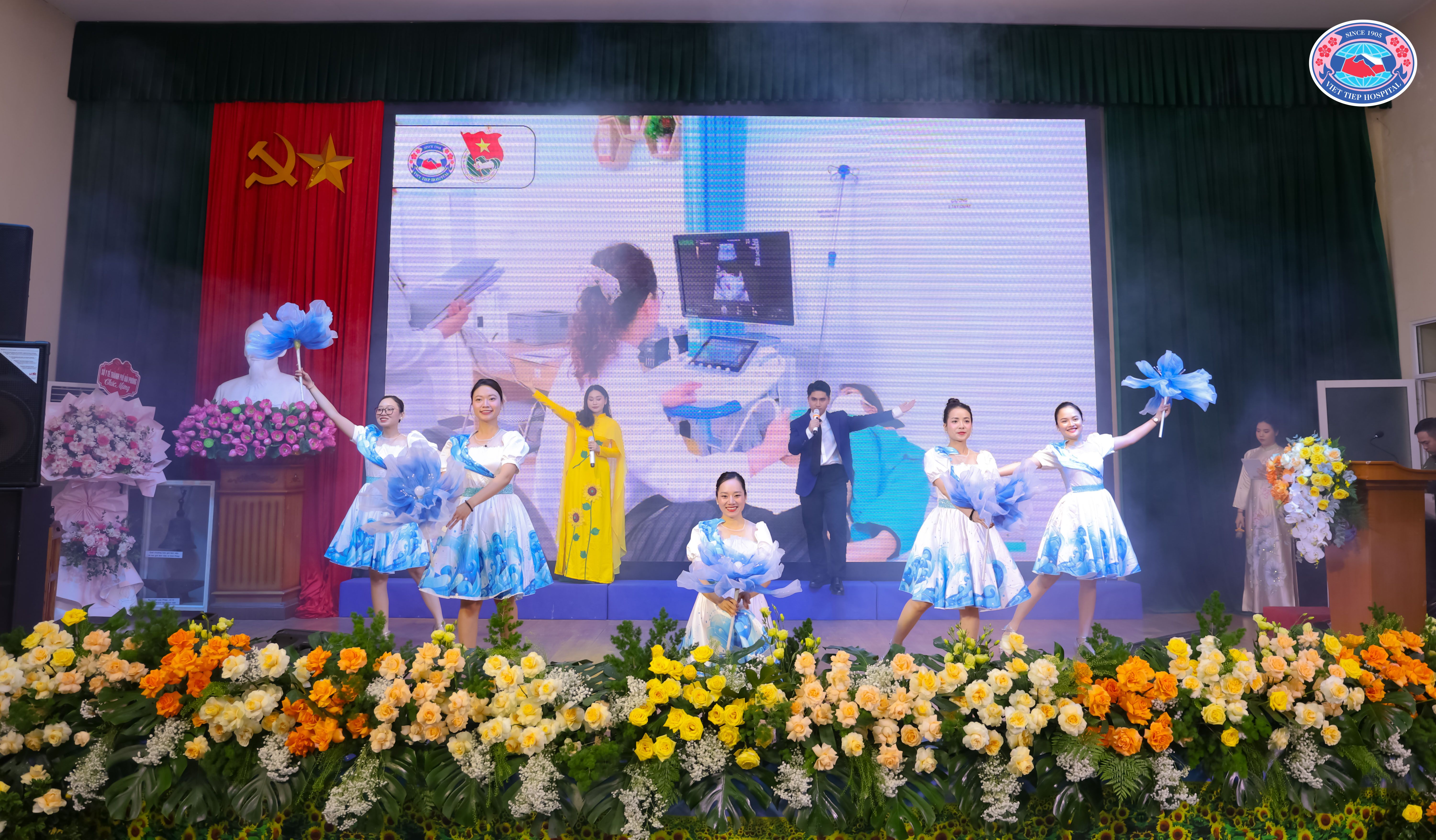 (Các tiết mục văn nghệ do cán bộ, nhân viên y tế Bệnh viện Hữu Nghị Việt Tiệp biểu diễn, hòa cùng những lẵng hoa tươi thắm, đã góp phần tạo nên không khí trang trọng, ấm áp, lan tỏa tinh thần đoàn kết, niềm tự hào và sắc màu rực rỡ cho Đại hội)