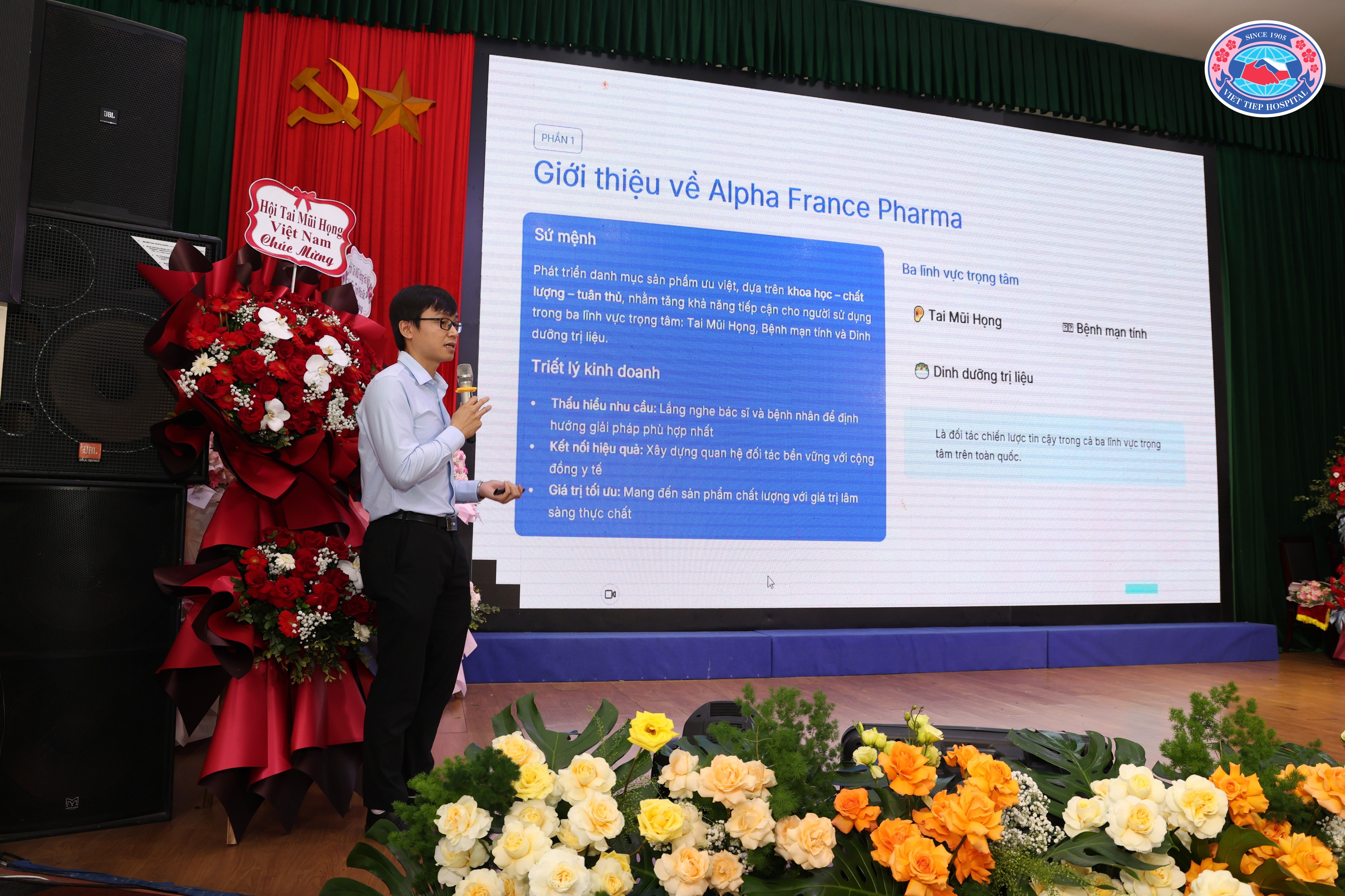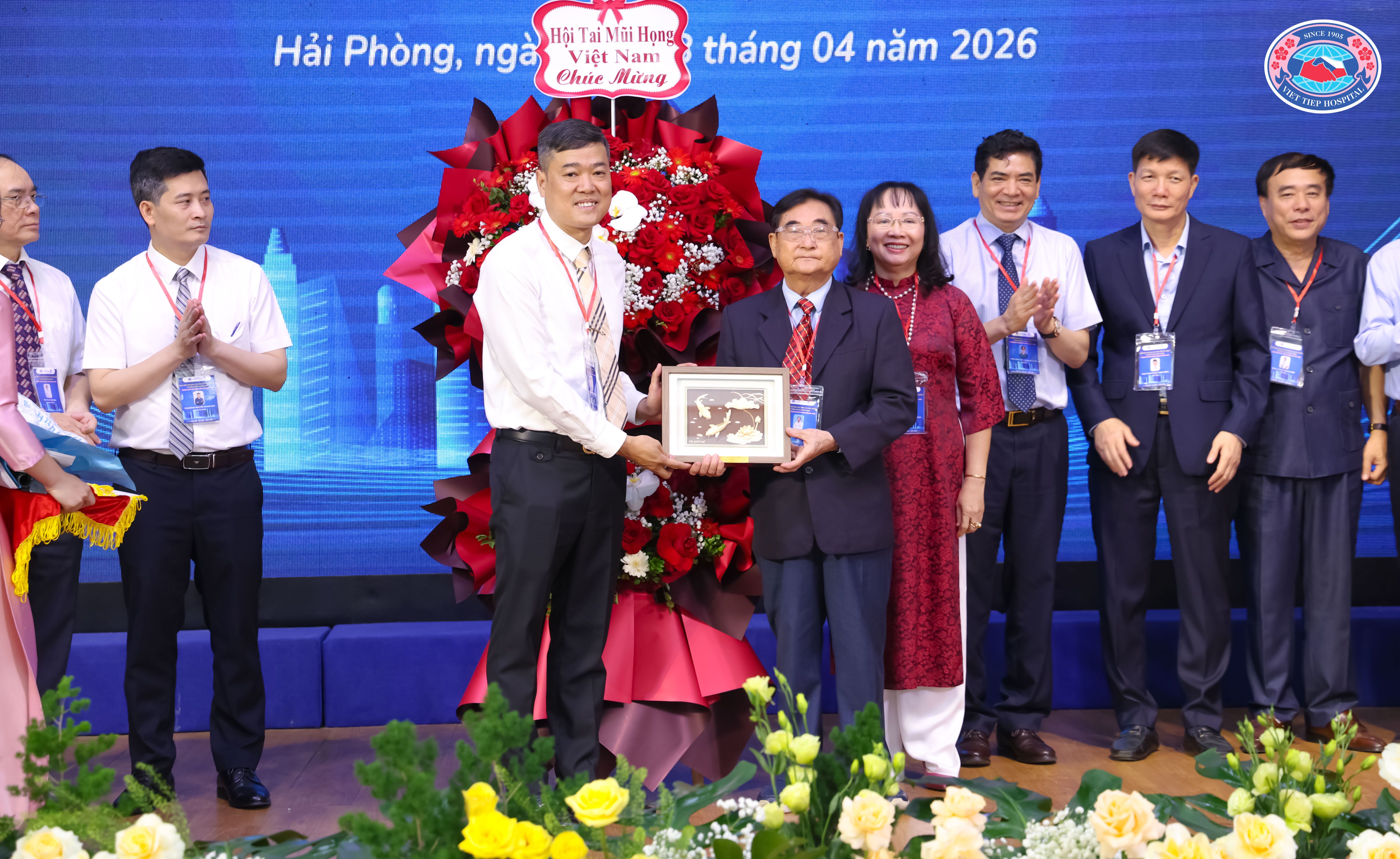 (Hội Tai Mũi Họng thành phố Hải Phòng trân trọng tặng hoa tri ân các nhà tài trợ đã đồng hành, góp phần vào thành công của Đại hội)