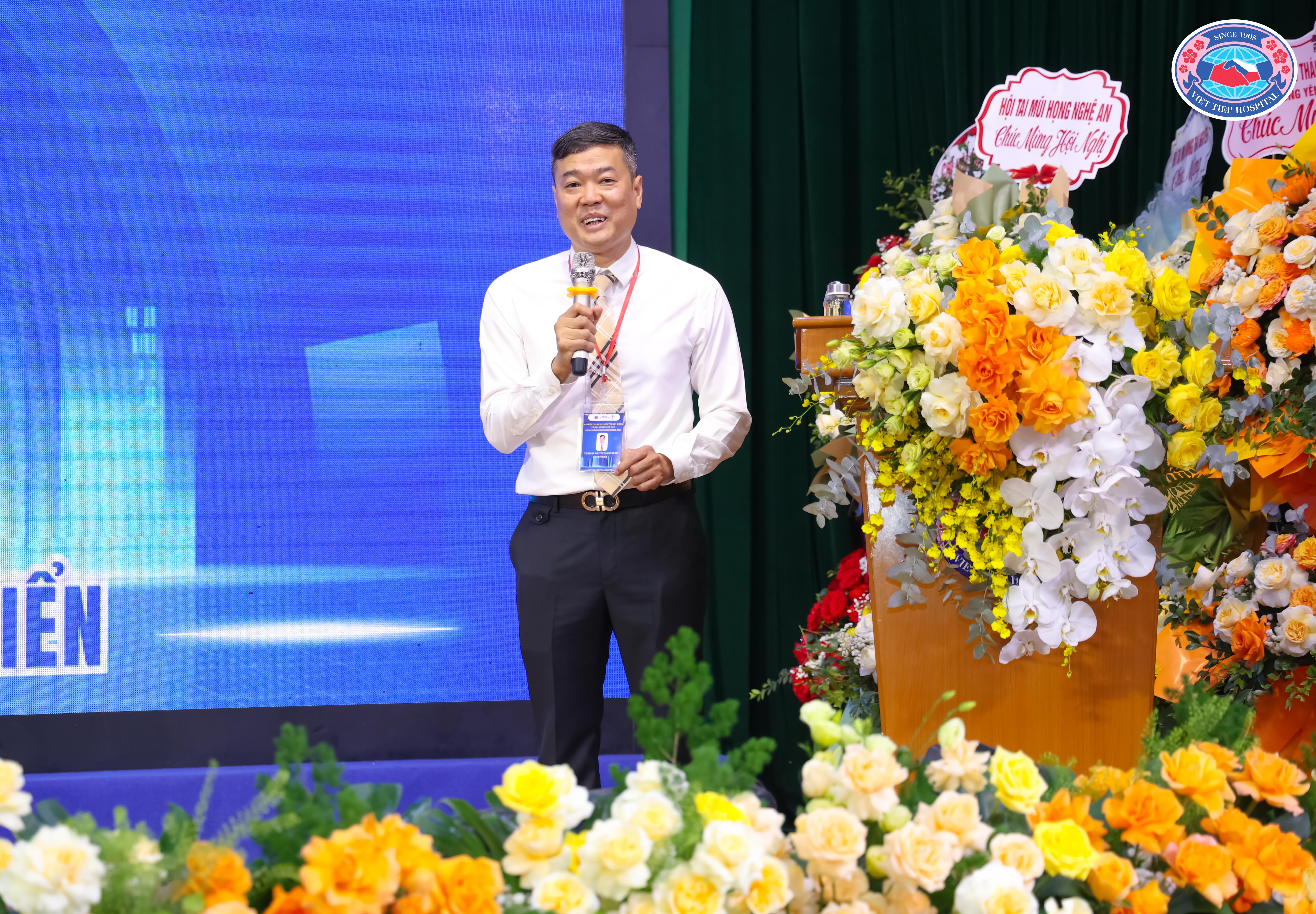 (TS.BSCKII Nguyễn Quang Hùng – Chủ tịch Hội Tai Mũi Họng thành phố Hải Phòng, Trưởng khoa Tai Mũi Họng, Bệnh viện Hữu Nghị Việt Tiệp phát biểu bế mạc, gửi lời tri ân sâu sắc tới các đại biểu, chuyên gia và toàn thể hội viên đã đồng hành, góp phần làm nên thành công của Đại hội)