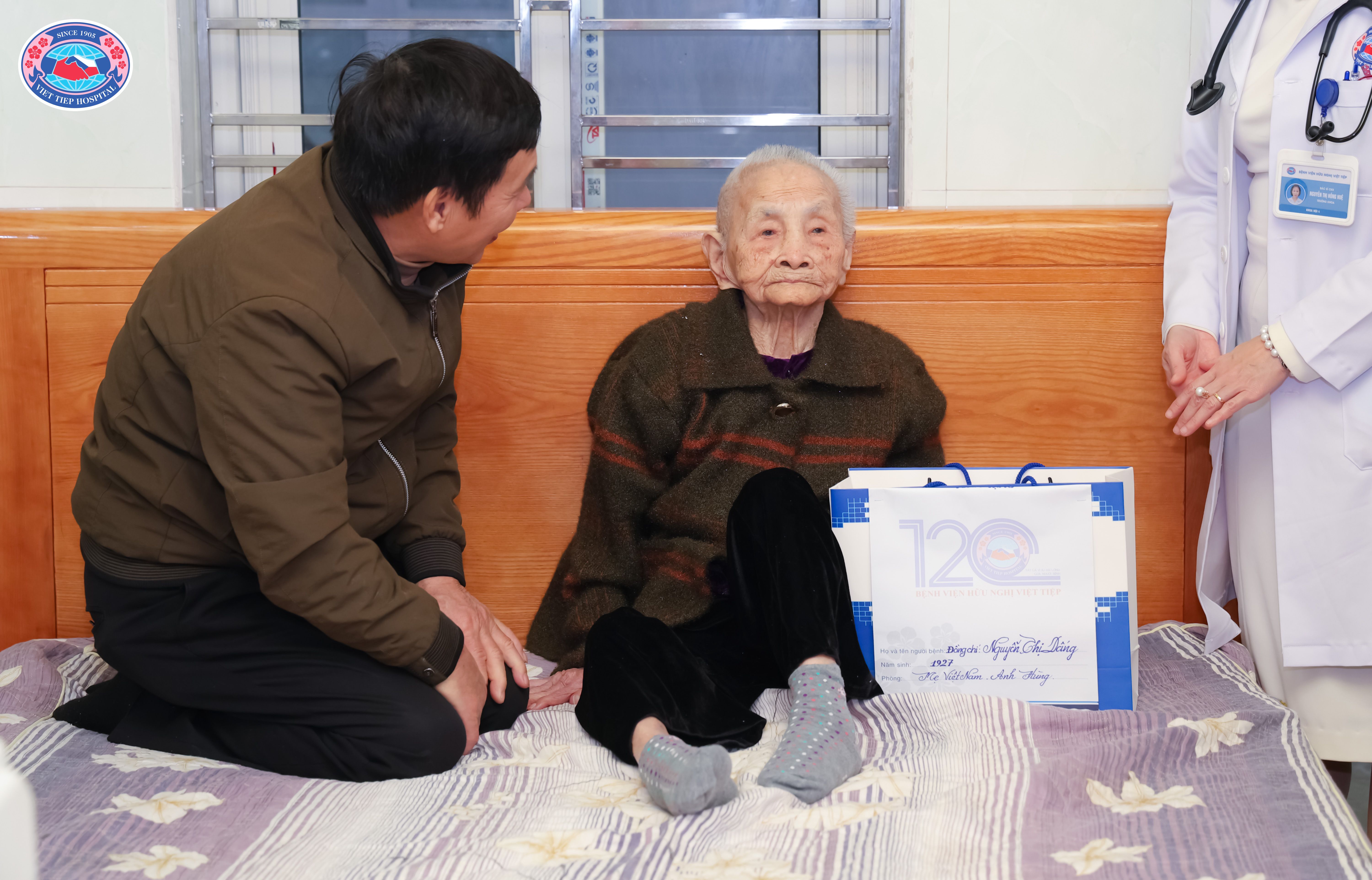 Ở tuổi 99, Mẹ Nguyễn Thị Dấng vẫn minh mẫn, xúc động đón nhận tình cảm của các y bác sĩ. Ánh mắt rưng rưng, nụ cười hiền hậu và những lời cảm ơn mộc mạc của Mẹ khiến không khí buổi gặp gỡ trở nên lắng đọng, ấm áp. Đó là khoảnh khắc thiêng liêng, nhắc nhở mỗi người về giá trị của hòa bình, của độc lập và trách nhiệm gìn giữ những thành quả Cách mạng.