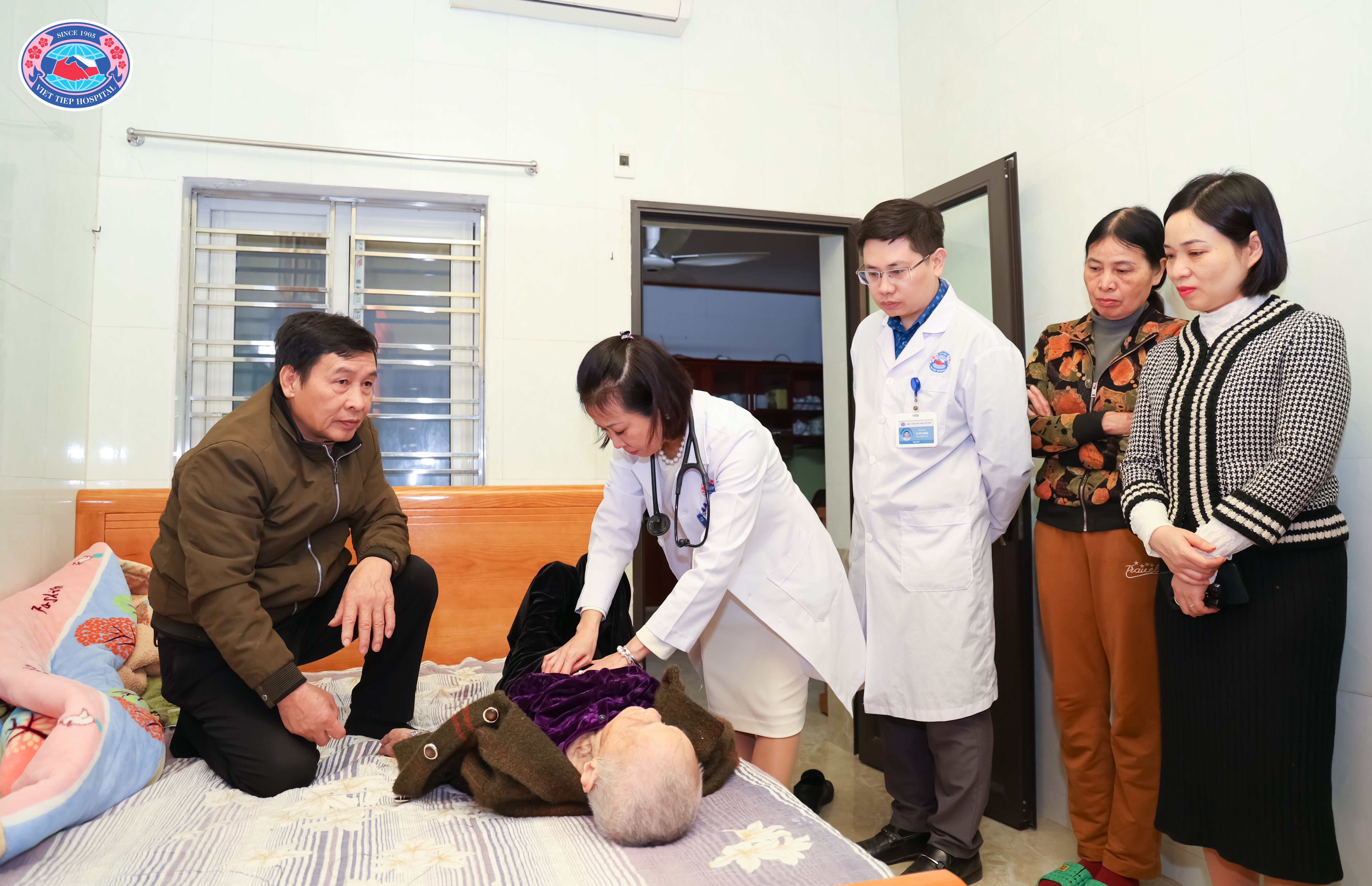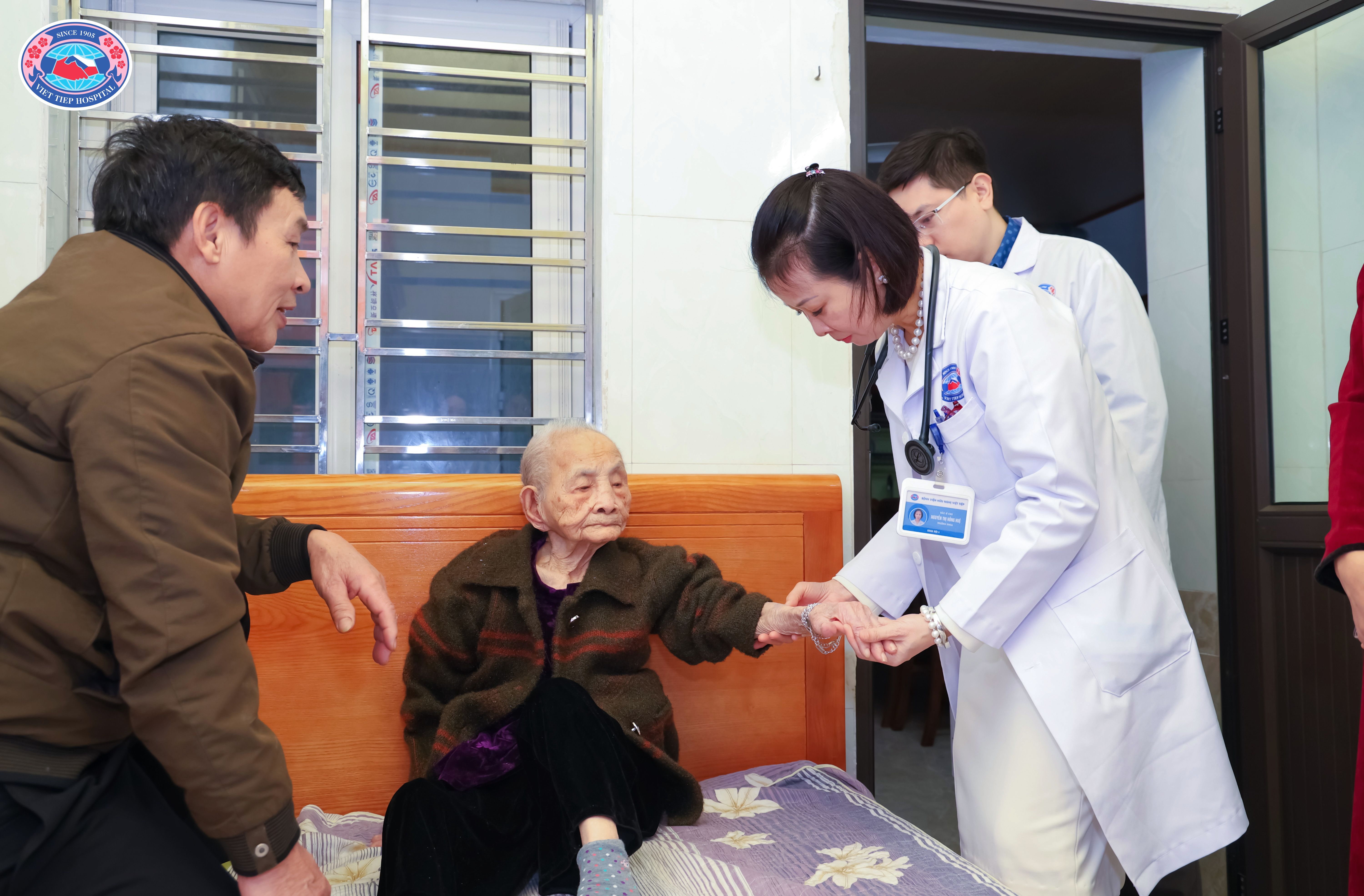 Tại buổi thăm hỏi, các y bác sĩ Trung tâm Bảo vệ sức khỏe cán bộ thành phố, cùng Tổ Dịch vụ lấy mẫu xét nghiệm tại nhà – Bệnh viện Hữu Nghị Việt Tiệp đã tận tình thăm khám, kiểm tra toàn diện sức khỏe cho Mẹ; thực hiện các xét nghiệm cận lâm sàng cần thiết, tư vấn chế độ sinh hoạt, dinh dưỡng và dùng thuốc phù hợp với tình trạng sức khỏe và tuổi cao. Mỗi cử chỉ ân cần, chu đáo, mỗi lời hỏi thăm đều chứa đựng sự kính trọng, quan tâm và tri ân sâu sắc.